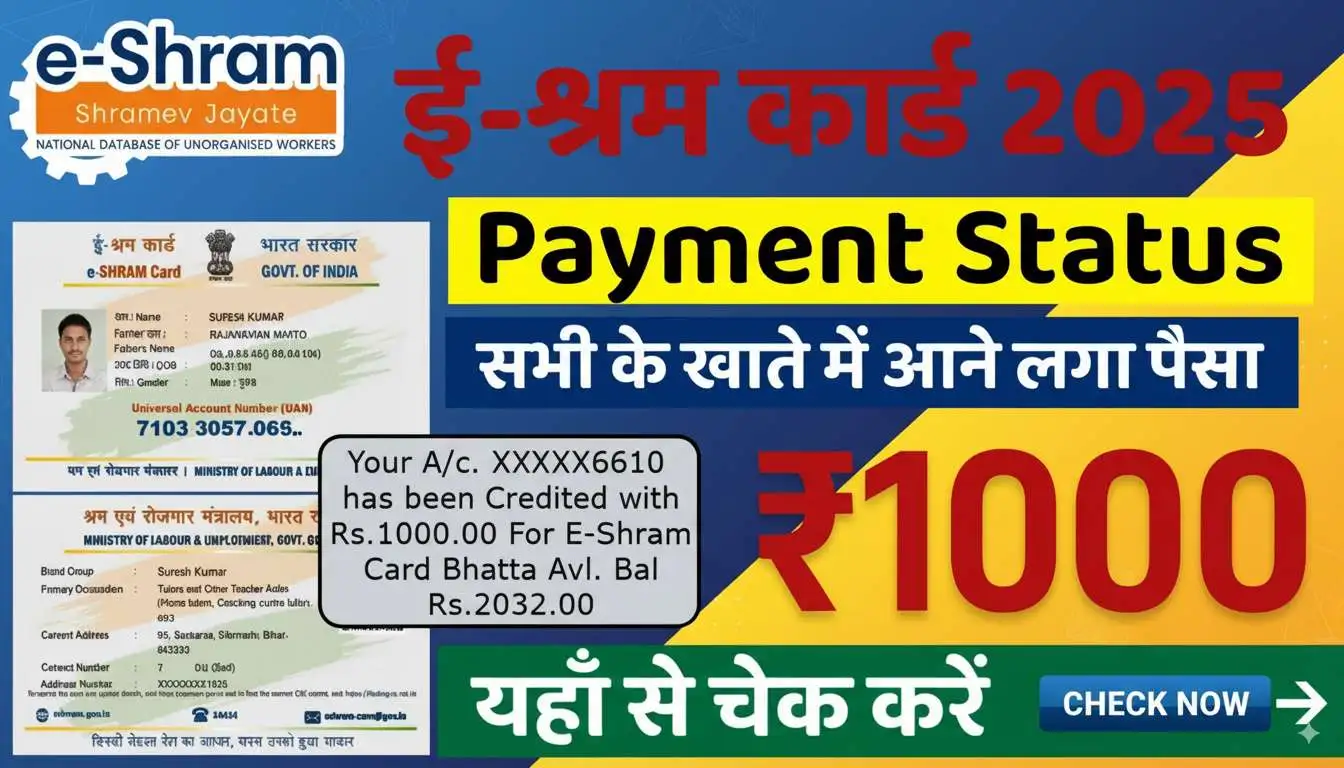 ई-श्रम कार्ड वालों के लिए खुशखबरी! ₹1000 की नई किस्त आनी शुरू, ऐसे करें पेमेंट स्टेटस चेक